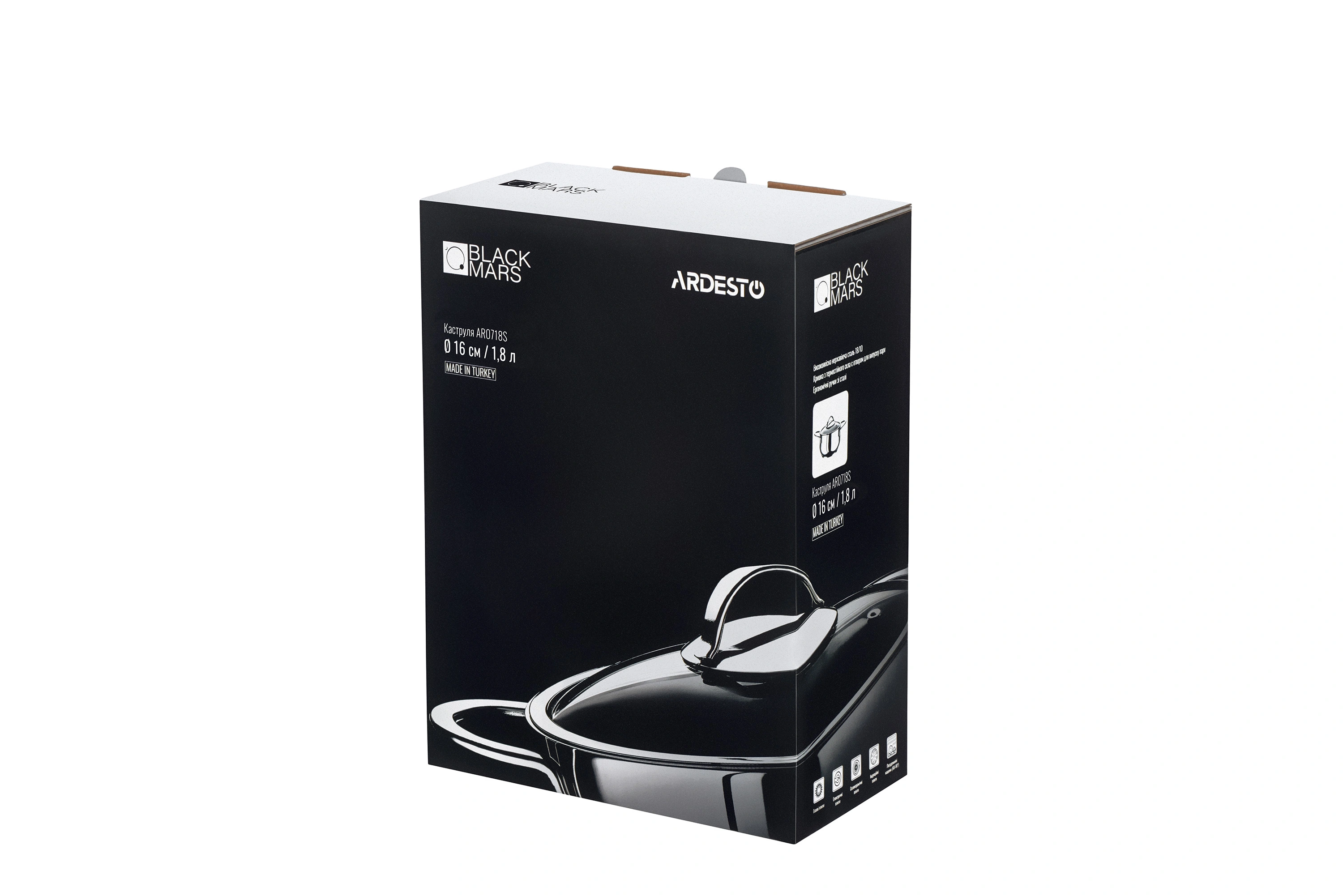 Каструля зі скляною кришкою Ardesto Black Mars, 1.8л, нержавіюча сталь