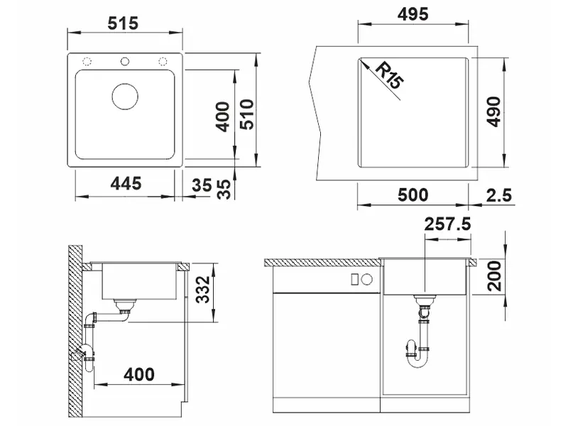 * Кант, що обрамляє чашу, захищає робочу поверхню від бризок