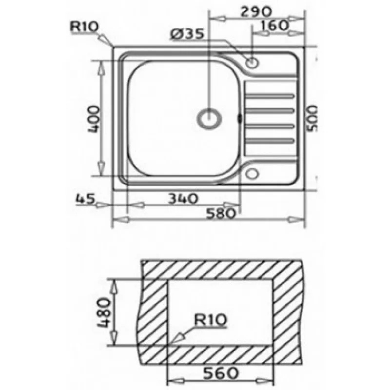 Прямокутна мийка для кухні врізна Teka UNIVERSAL 580.500 1B 1D (40109616) нержавіюча сталь з однією чашею та крилом.