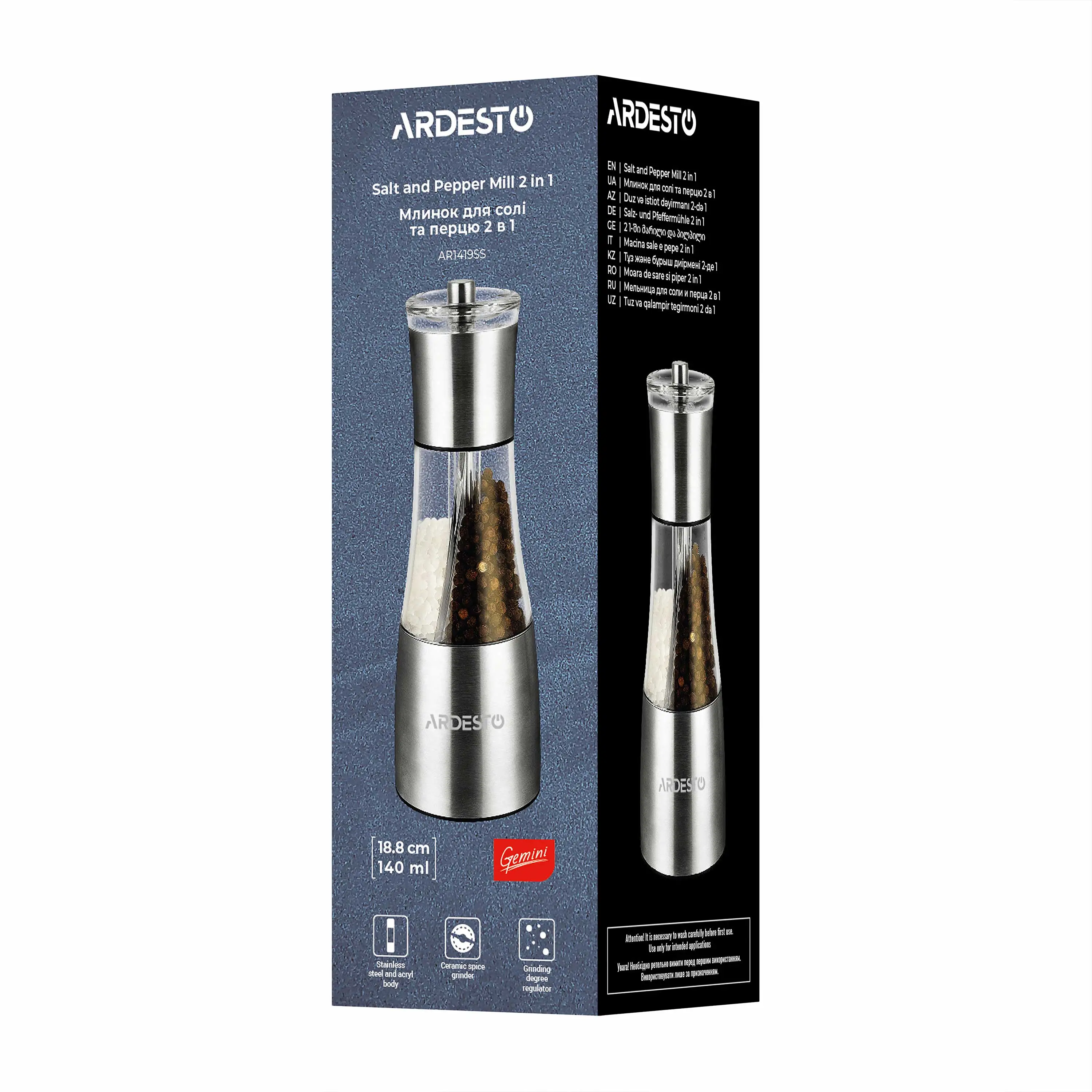 Млинок для солі та перцю ARDESTO Gemini 2 в 1 виготовлено з безпечних для здоров’я
