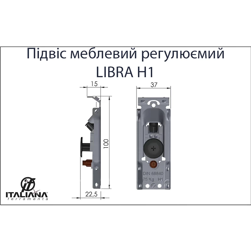Підвіс регульований Italiana Ferramenta Libra H1 (до 150кг на пару)