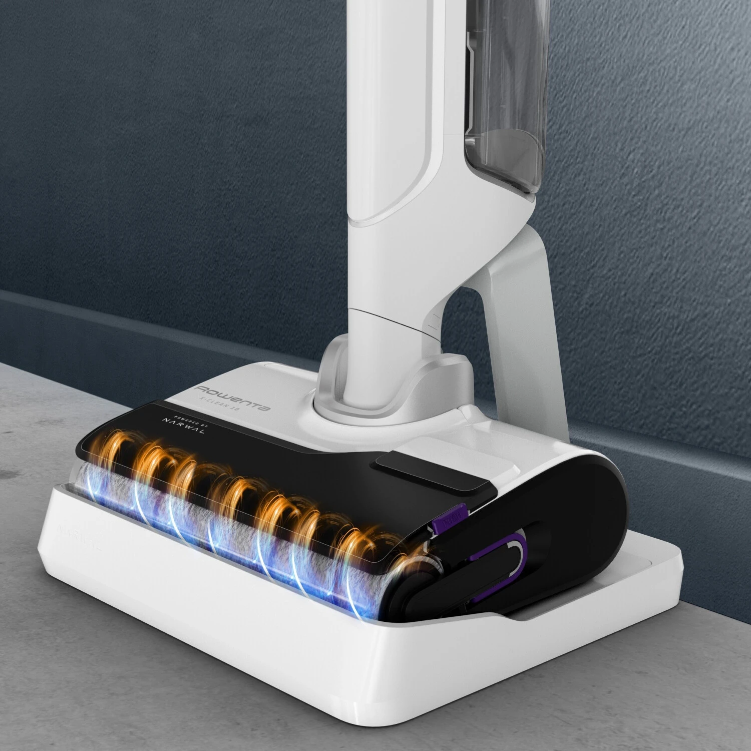 Rowenta X-Clean 10 GZ7035WO — це бездротовий мийний пилосос, який поєднує потужність 200 Вт із функціональністю "2-в-1": сухе та вологе прибирання. Завдяки моторизованому валику з мікрофібри та гнучкому обертанню на 180°, він легко очищує навіть важкодоступні місця. Контейнер для пилу об'ємом 0,67 л та резервуар для води 0,79 л забезпечують тривале прибирання без перерв. Автономна робота до 60 хвилин і система самоочищення роблять його ідеальним помічником для щоденного використання.