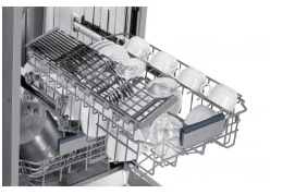 * Обладнання Гігієнічна обробка, Датчик протікання, Захист від дітей, Кнопка Скасувати/Злив, Лоток для столових приладів, Відкладений старт, Половинне завантаження, Регулювання по висоті, Ручка кошика, Система запобігання протіканням Aqua stop, Складні стійки, Пом'якшувач води