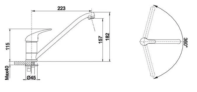 - Кут повороту виливу 360°