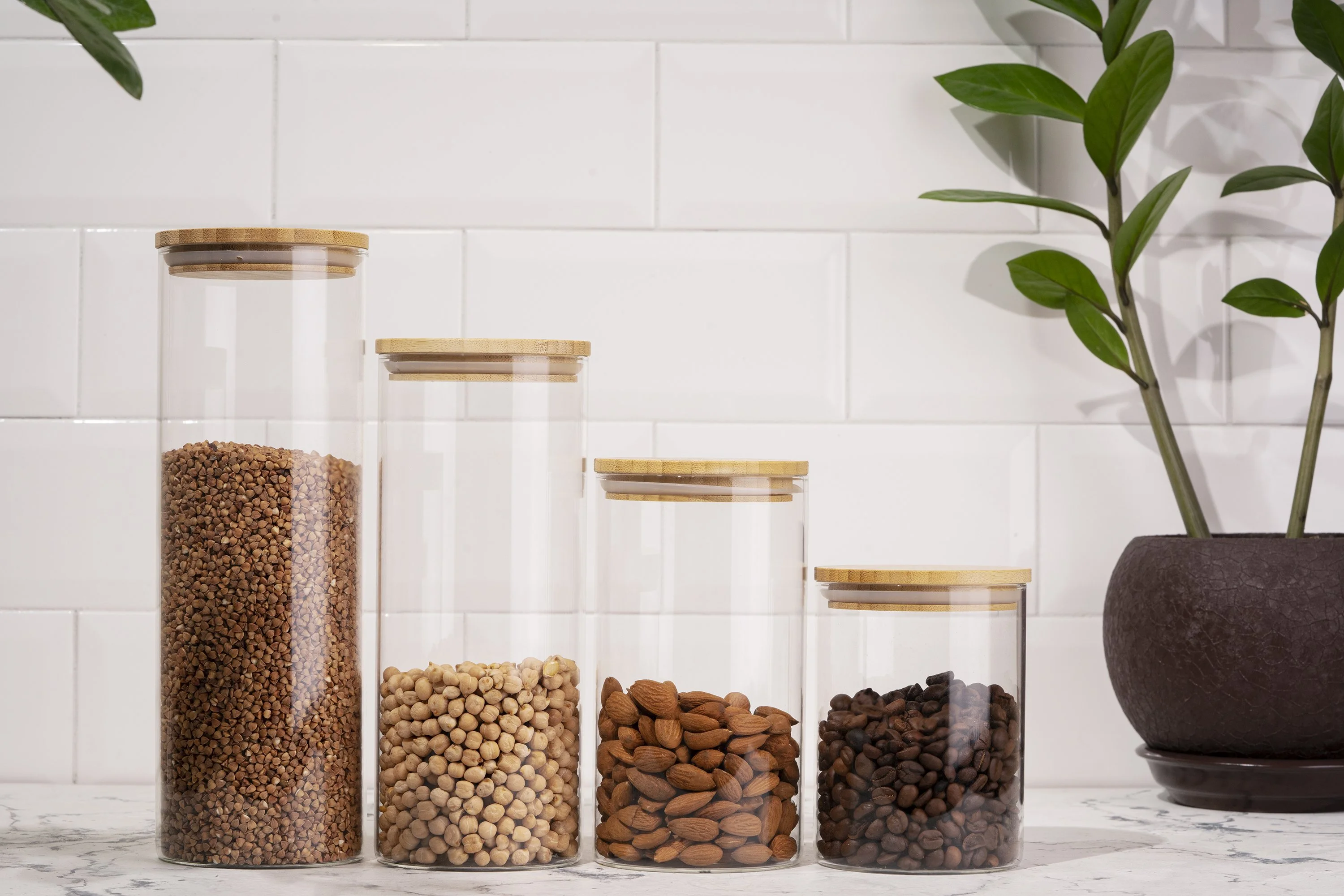 Скляна банка серії Fresh для зберігання продуктів з кришкою з бамбука.
