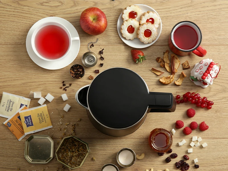 Можна приготувати смачну чашку чаю чи кави, використовуючи лише одну руку. Кришка відкривається м'яким натисканням на кнопку, а спеціальна конструкція кришки проти капання гарантує, що з чайника не впаде краплі окропу.