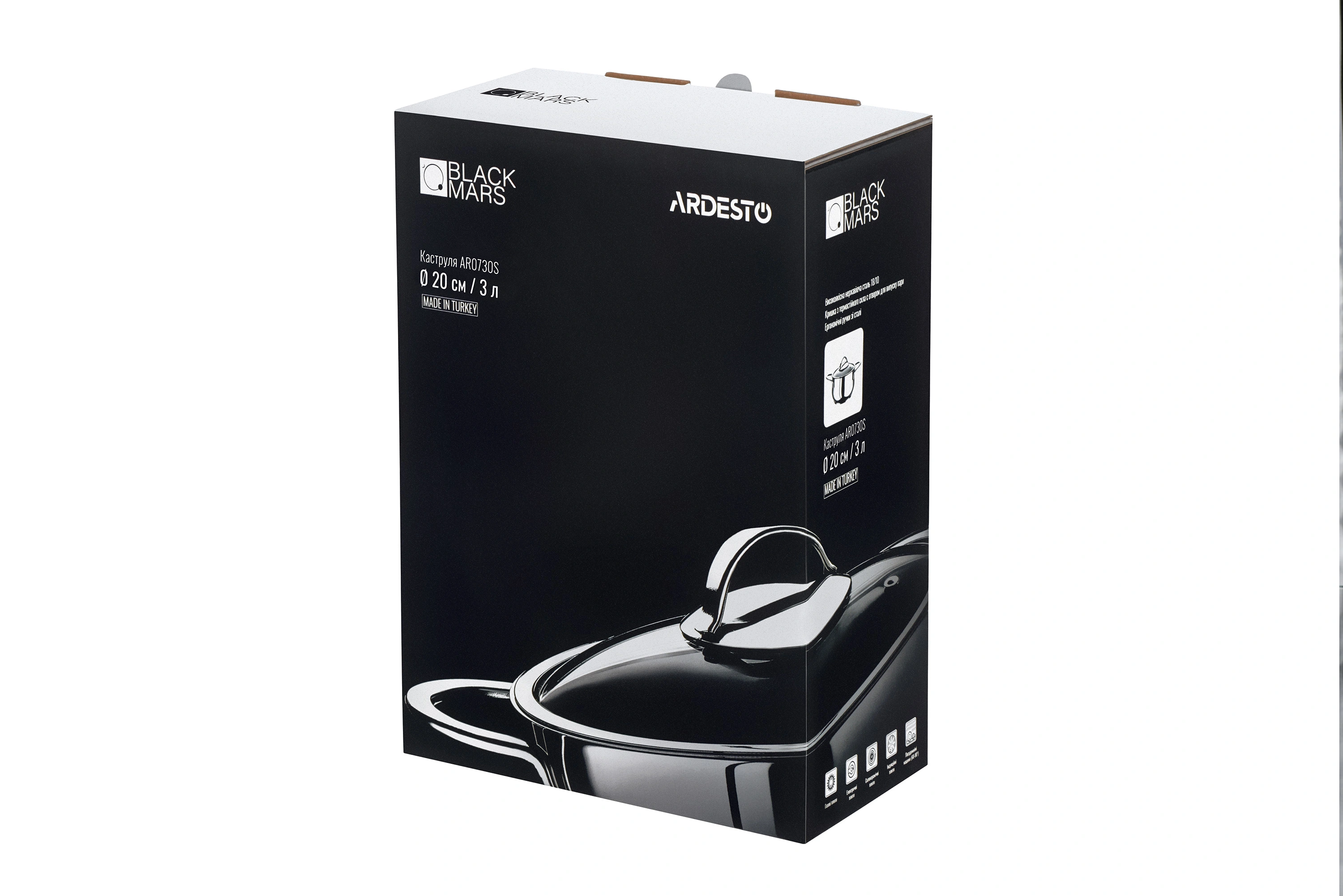 Каструлі серії BLACK MARS виготовлені з нержавіючої сталі 18/10. Вони сумісні з усіма видами плит, включаючи індукційну, а для очищення можна використовувати посудомийну машину.