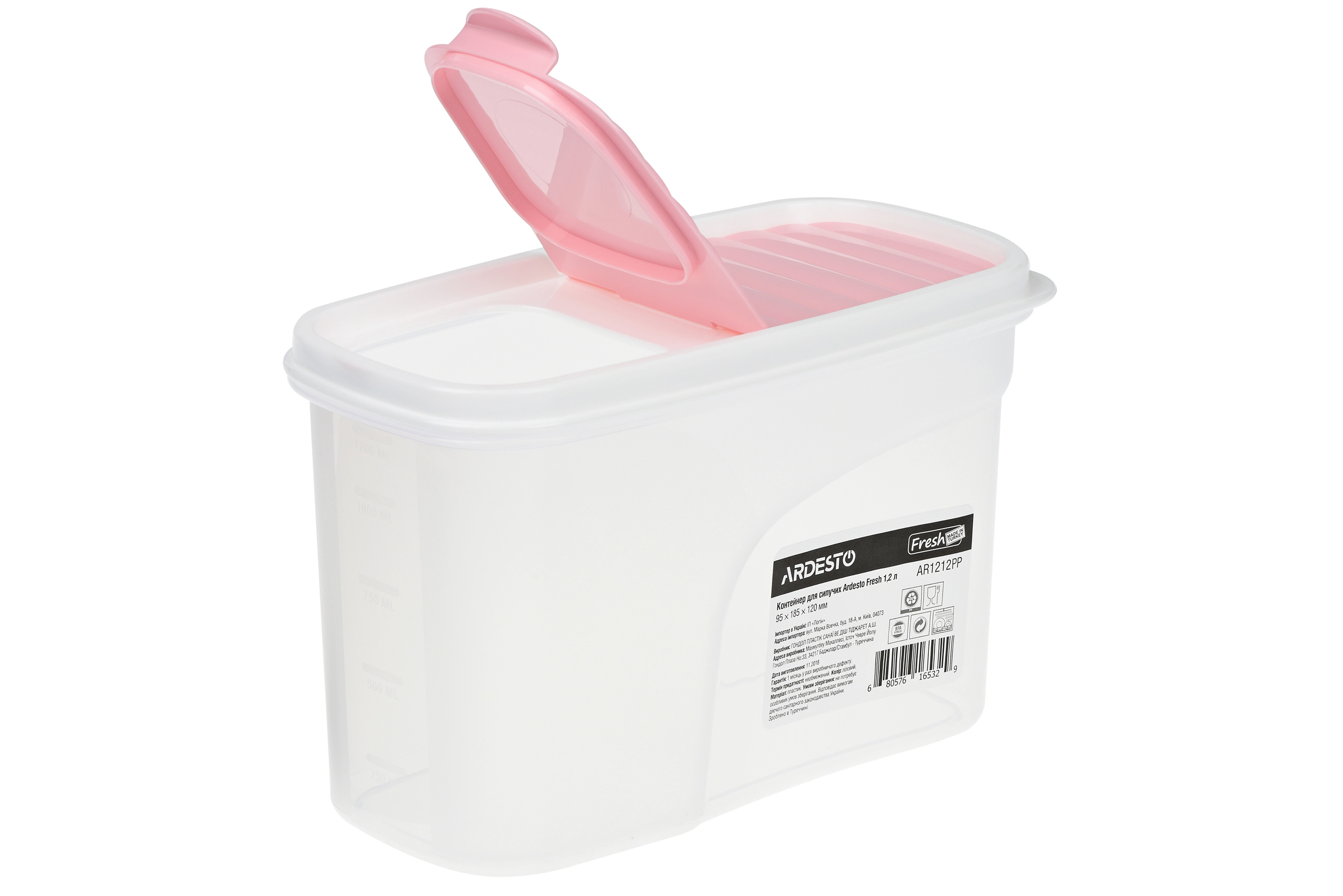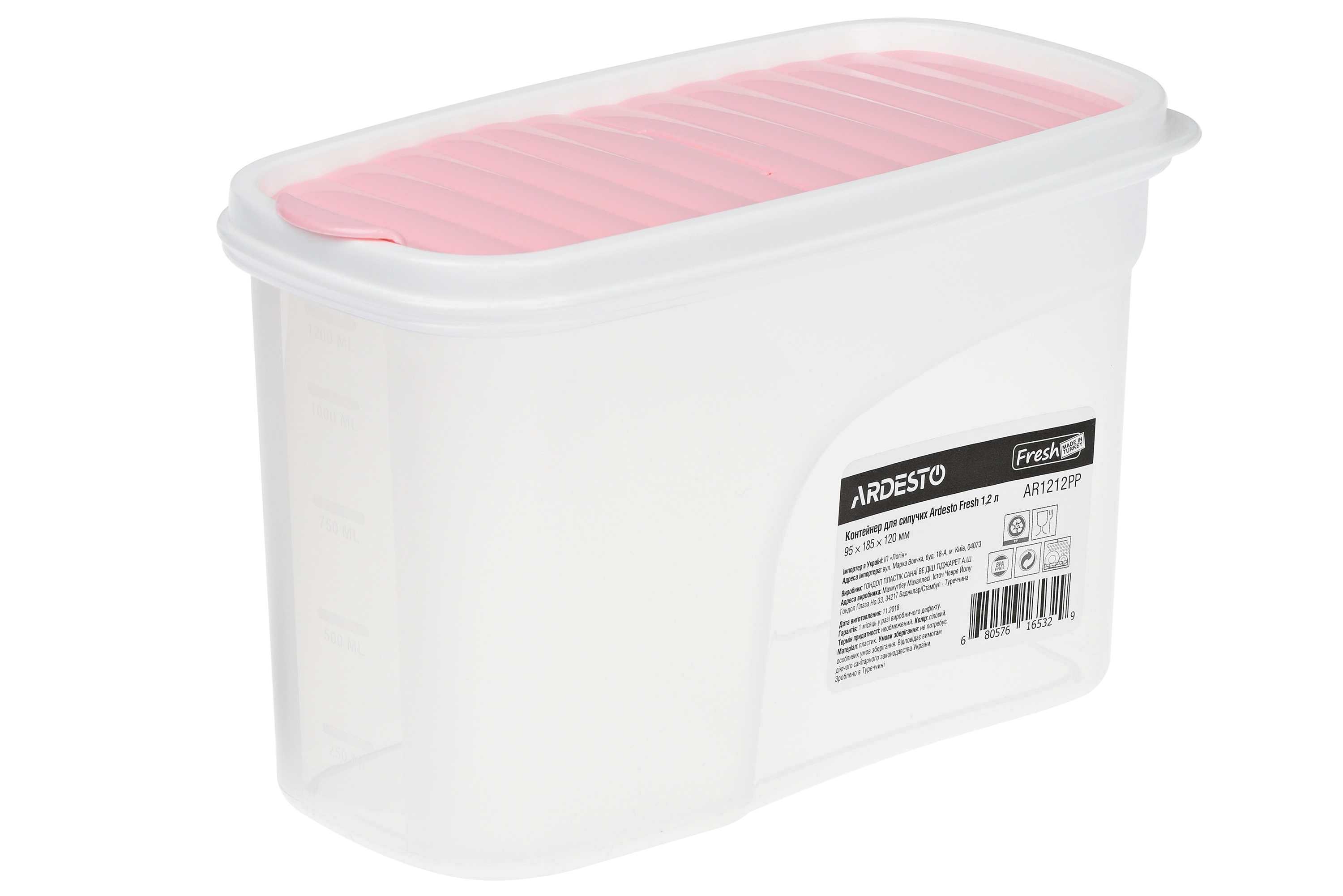 Контейнер для зберігання харчових продуктів Ardesto Fresh, 1.2л, пластик, рожевий