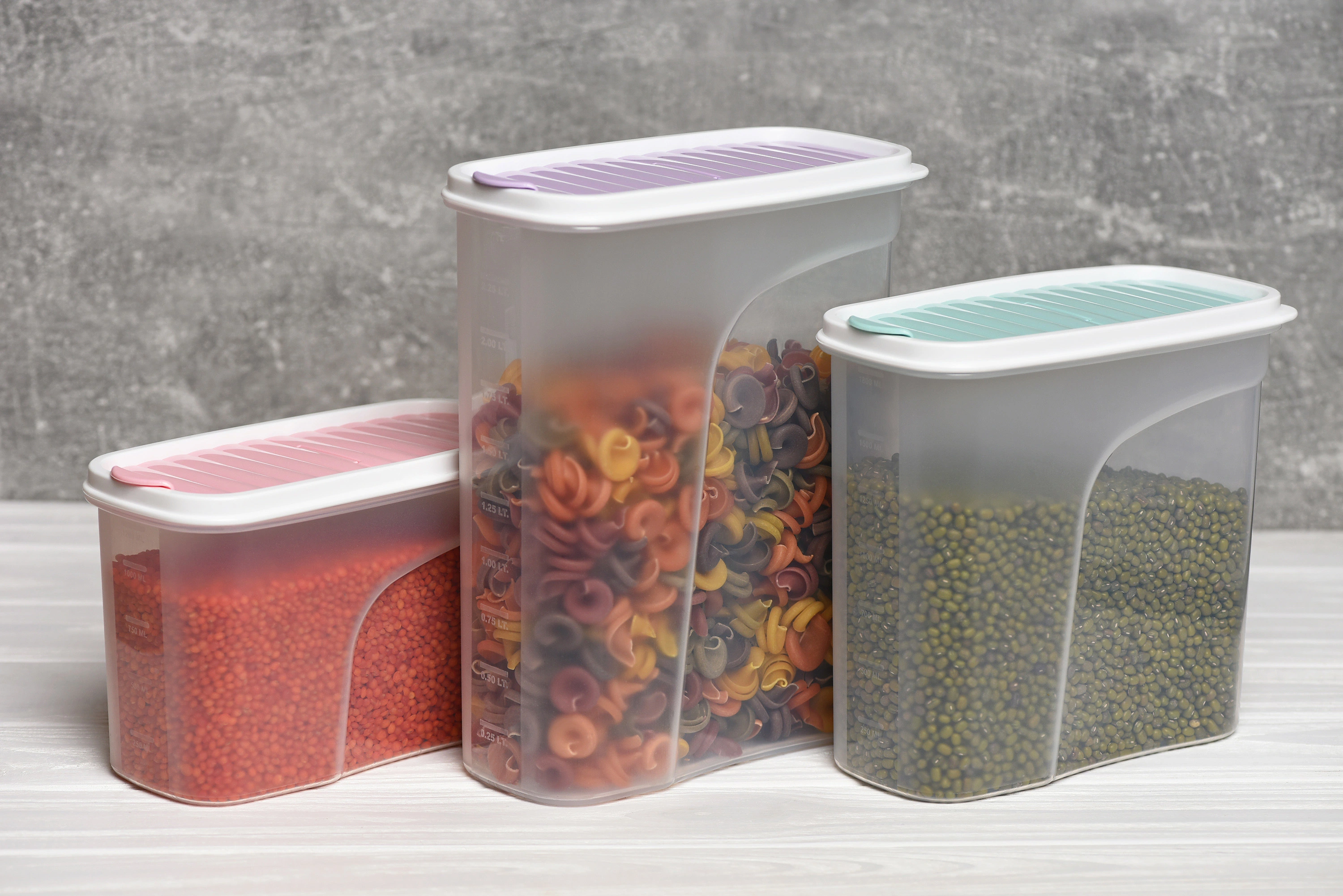 Прозорий пластиковий контейнер для сипучих продуктів з гнучкою кришкою та клапаном.
