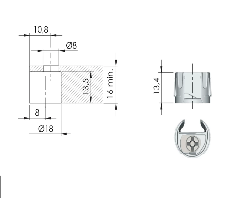 Корпус до полицетримача PK2 – це надійний і зручний у використанні елемент для кріплення полиць з ДСП. Він забезпечує як вертикальне, так і горизонтальне стягування, що гарантує стабільність і міцність конструкції меблів. Завдяки своїм особливостям, корпус дозволяє легко фіксувати полиці, а також дно і верх конструкції, виключаючи необхідність у додаткових стяжках.