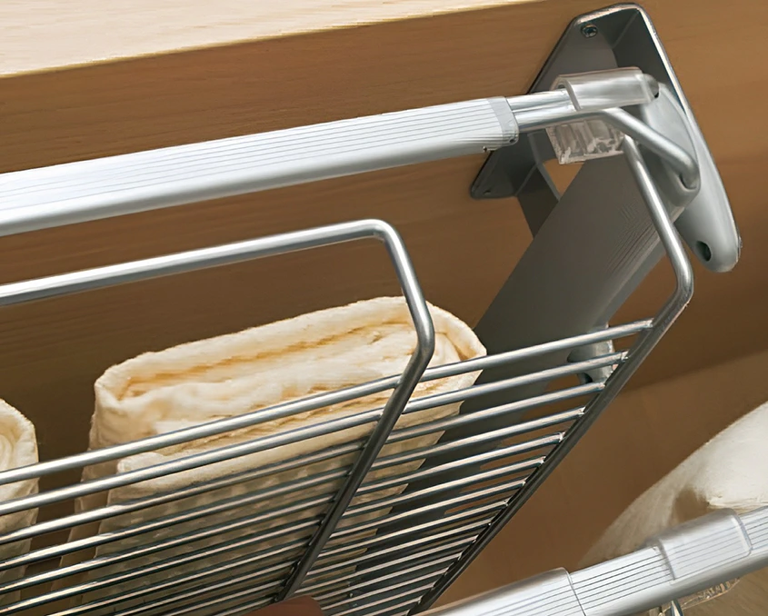 Корзини Vibo легко встановлюються до шаф різних розмірів та конфігурацій, завдяки чому їх можна використовувати у будь-якій кімнаті і для будь-яких потреб
