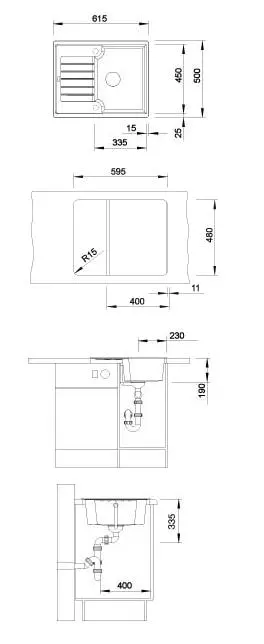 * *Враховувати ширину пристінного канта у разі встановлення мийки біля стіни або пеналу