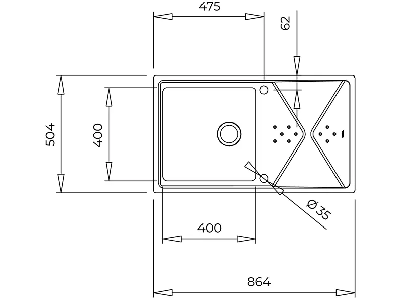 * Чаша: 400 x 400 x 210 мм