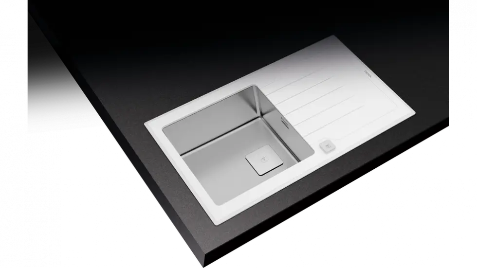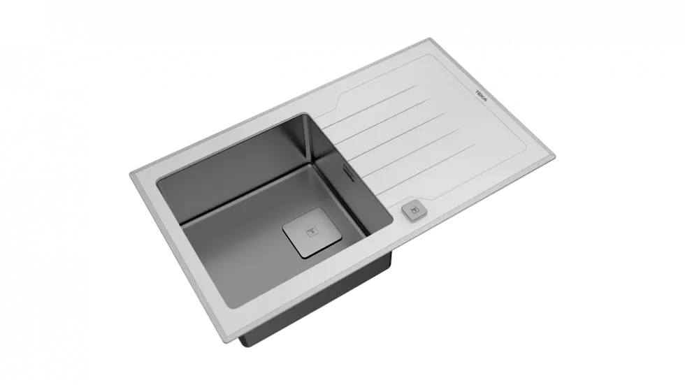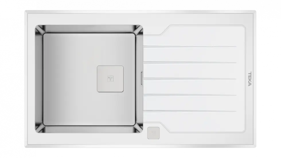 Прямокутне миття для кухні врізне Teka Diamond 1B 1D 86 (115100012) біле скло з однією чашею і крилом