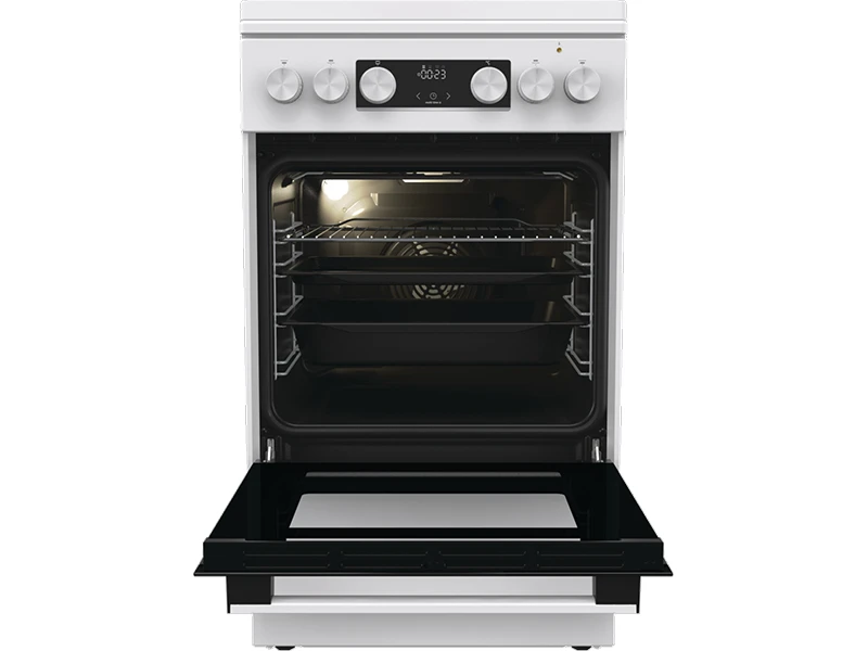 Плити Gorenje мають збільшену площу випікання та використовують великі дека. Проте інноваційні рішення дали змогу оптимізувати енергоспоживання та забезпечити рівномірне приготування їжі незалежно від її кількості. Внутрішній простір духовки ефективно використовується по всій ширині, а передова технологія забезпечує рівномірність приготування на всіх рівнях.