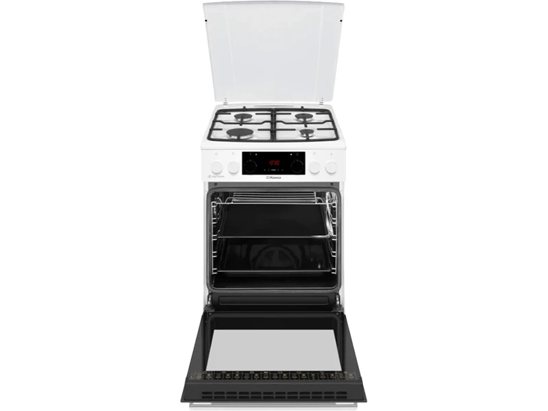 Комбінована плита Hansa FCMW59329 - преміальний дизайн і багатофункціональність. Електрозапалювання в поворотній ручці забезпечує комфортне використання варильної панелі. Потрійне скління дверцят гарантує безпеку. Електричний гриль дає змогу якісно запікати великі порції м'яса або птиці з рум'яною скоринкою без пересушування продукту.