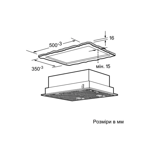 * Розміри ніші для вбудовування (ВxШxГ) 255 x 500 x 350 мм