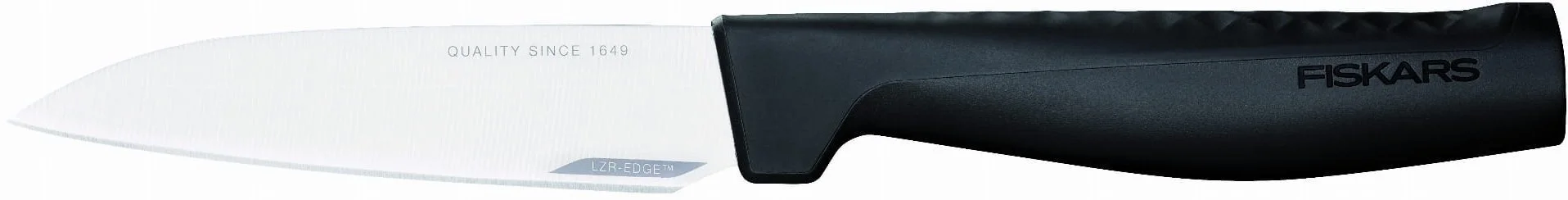 Довговічна гострота лез для будь-яких завдань на кухні. Ніж для коренеплодів відмінно підходить для чищення і нарізки овочів і фруктів. Міцне лезо з японської нержавіючої сталі, з технологією LZR-EDGE на ріжучій кромці леза, яка забезпечує гостроту ножів в 4 рази довше, в порівнянні з іншими ножами Fiskars. Рукоятка з покриттям Softouch має ергономічний дизайн, тривимірний малюнок забезпечує комфортне захоплення.