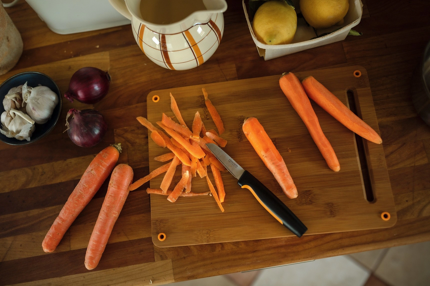 Ніж для коренеплодів з прямим лезом Fiskars Functional Form. Дуже добре підходить для чищення фруктів і овочів.