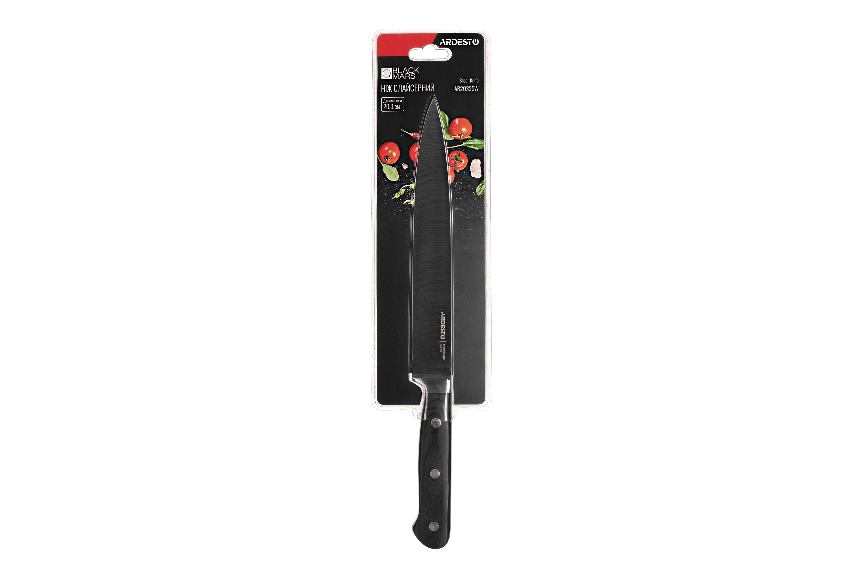 Кухонний ніж слайсерний Black Mars AR2032SW. Лезо виготовлене з нержавіючої сталі 3CR13, а ручка з дерева.
