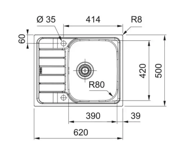 Franke Spark SKL 611-62 — це універсальна врізна мийка з однією глибокою чашею та функціональним крилом, виготовлена з нержавіючої сталі з декорованим покриттям. Завдяки оборотній конструкції мийку можна встановлювати з крилом ліворуч або праворуч. Підходить для шаф від 45 см, має розміри 620x500 мм та глибину чаші 160 мм.