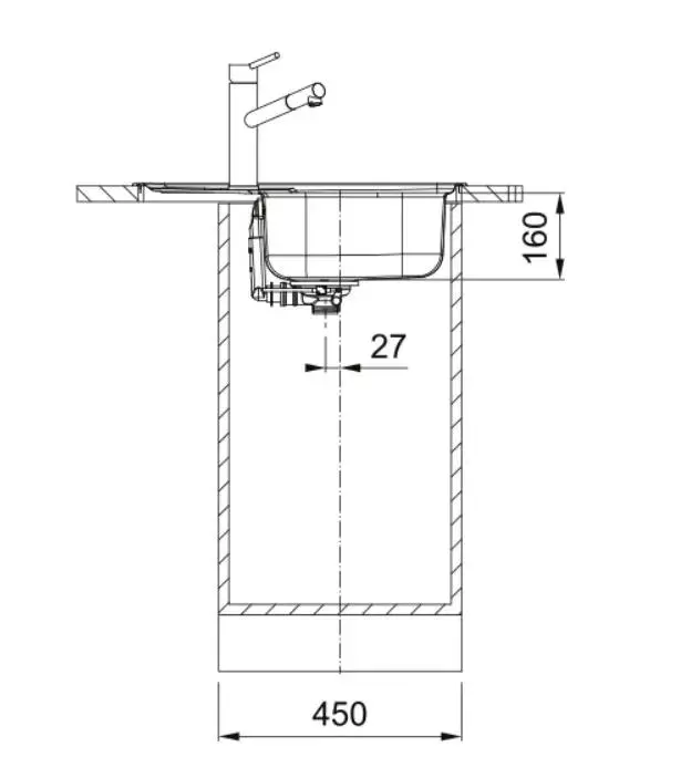 - Особливості з крилом; місце для монтажу змішувача; можливість