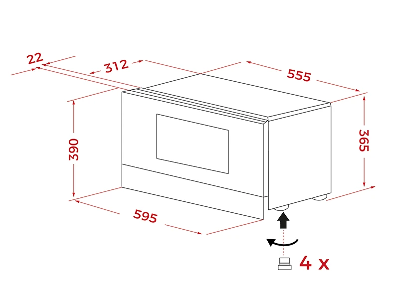 Щоб мікрохвильову піч було легше встановити, вона оснащена комплектом кріплення декоративного фасаду. Рама одразу закріплена на мікрохвильовій печі, а не на шафі, тому процес збирання відбувається швидше, а встановити вашу нову піч можна лише за 5 хвилин за допомогою 4 гвинтів.