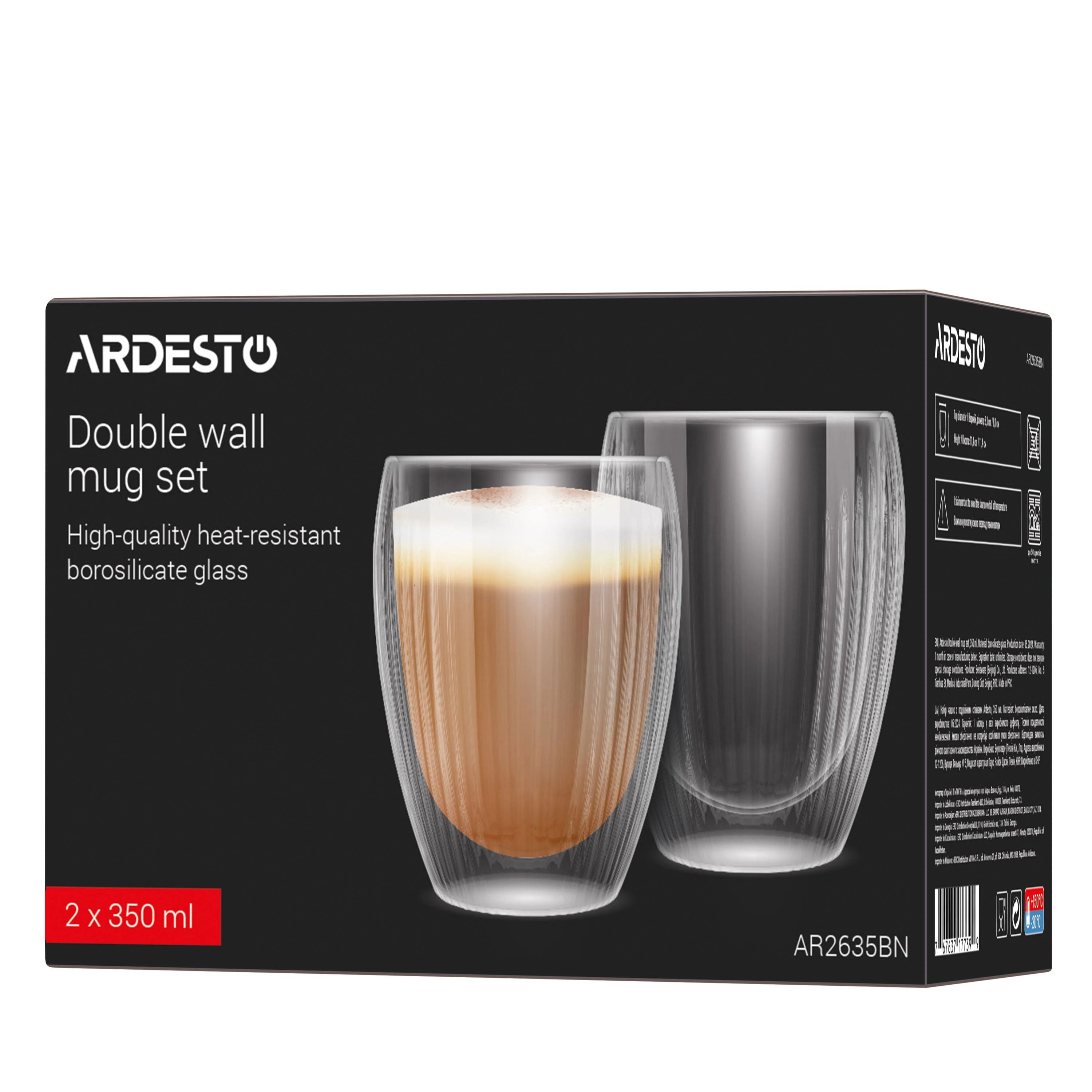 Набір чашок з подвійними стінками Ardesto 350мл, 2шт, боросилікатне скло, прозорий