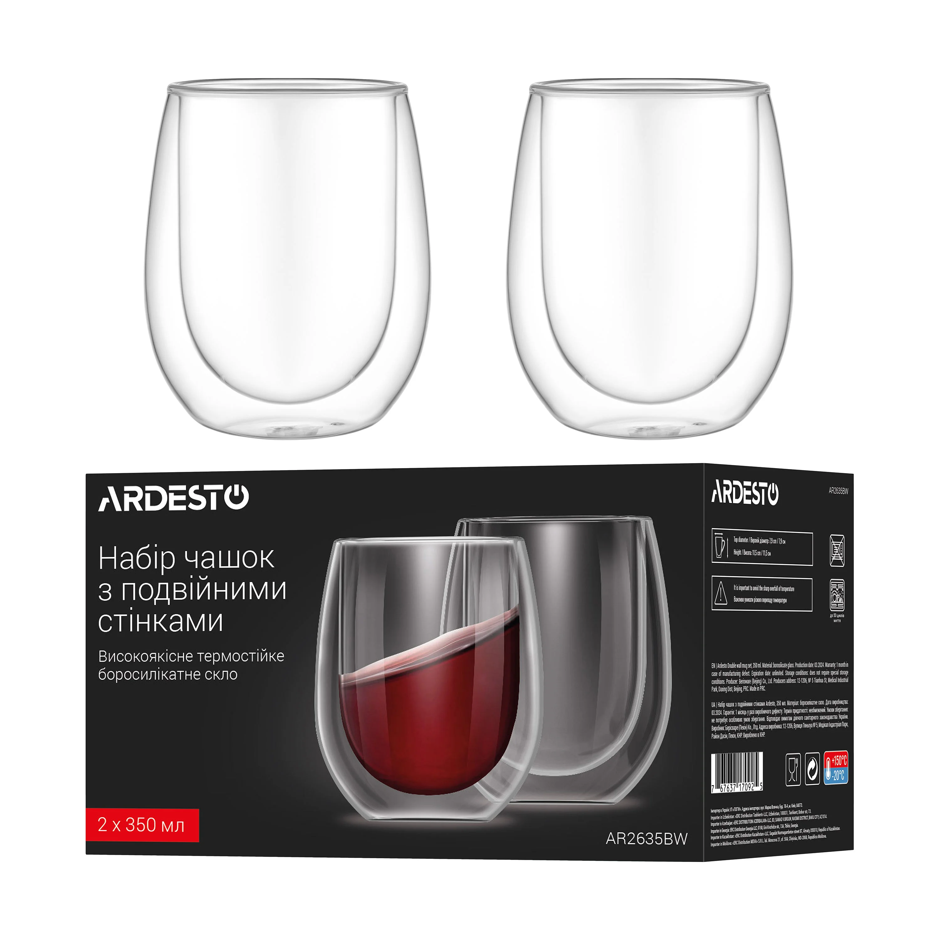 Чашки з подвійними стінками – це насолода для поціновувачів естетики та практичності. Вони надзвичайно міцні та легкі, витримують температуру від -20 до +150 °C. Їх можна використовувати як піали або креманки для морозива. Завдяки особливій конструкції здається, що напої та десерти в них парять у повітрі.