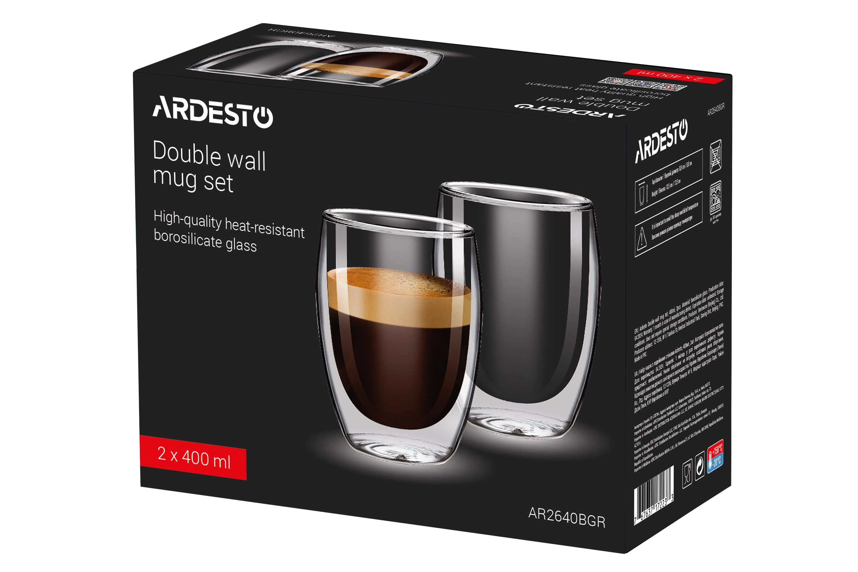Набір чашок з подвійними стінками Ardesto, 400мл, 2шт, боросилікатне скло, прозорий