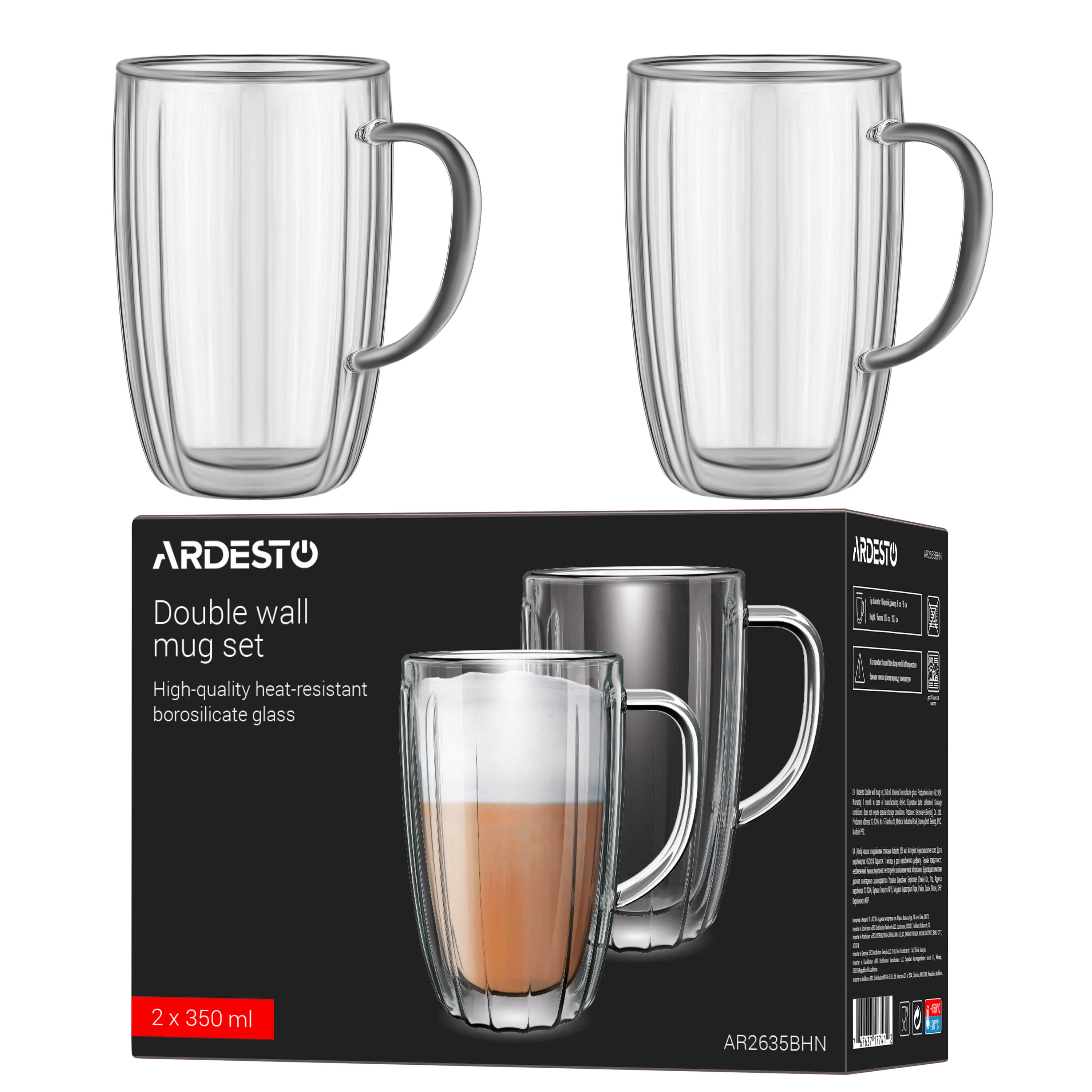 Набір чашок з ручками і подвійними стінками Ardesto 350мл, 2шт, боросилікатне скло, прозорий