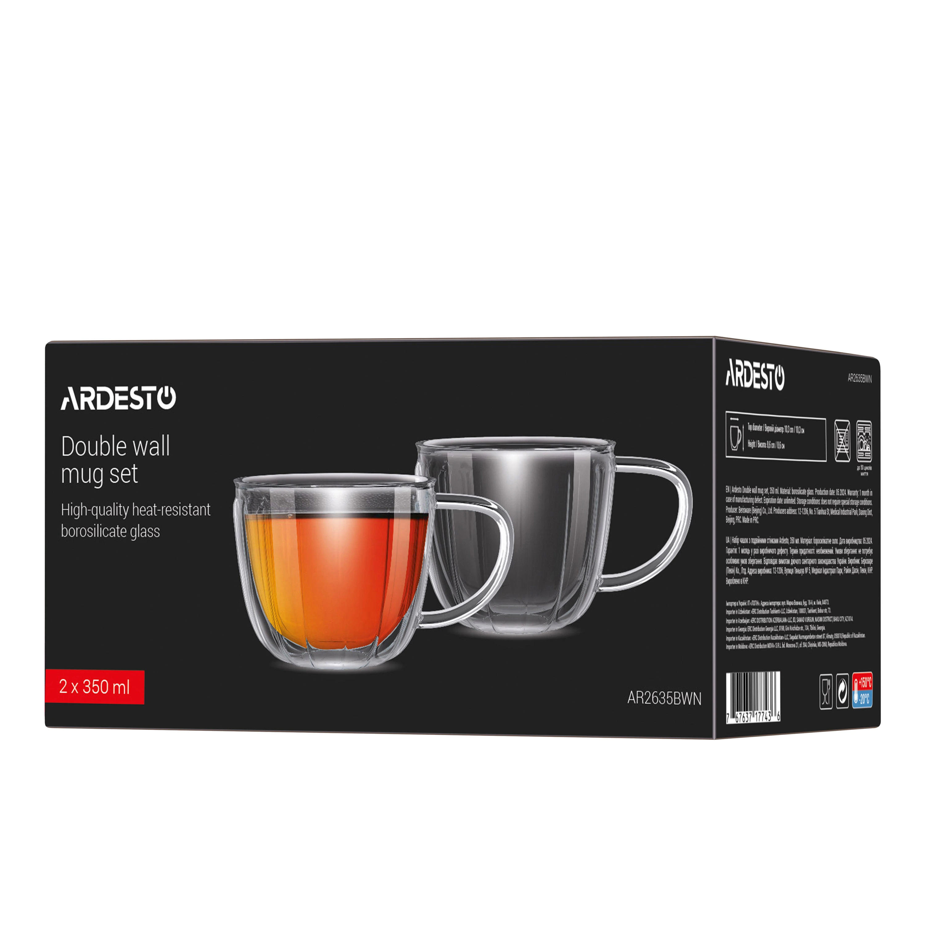 Набір чашок з ручками і подвійними стінками Ardesto 350мл, 2шт, боросилікатне скло, прозорий