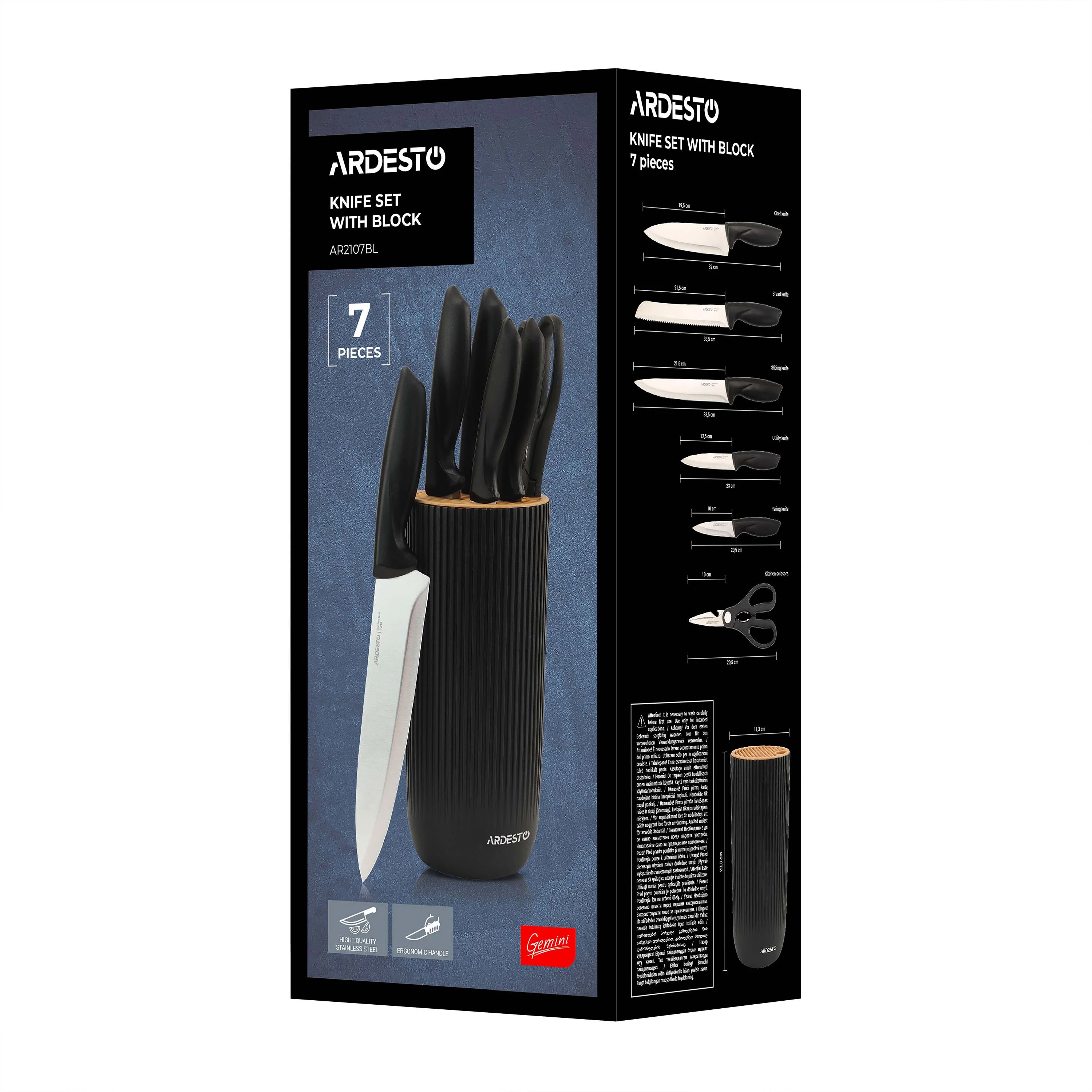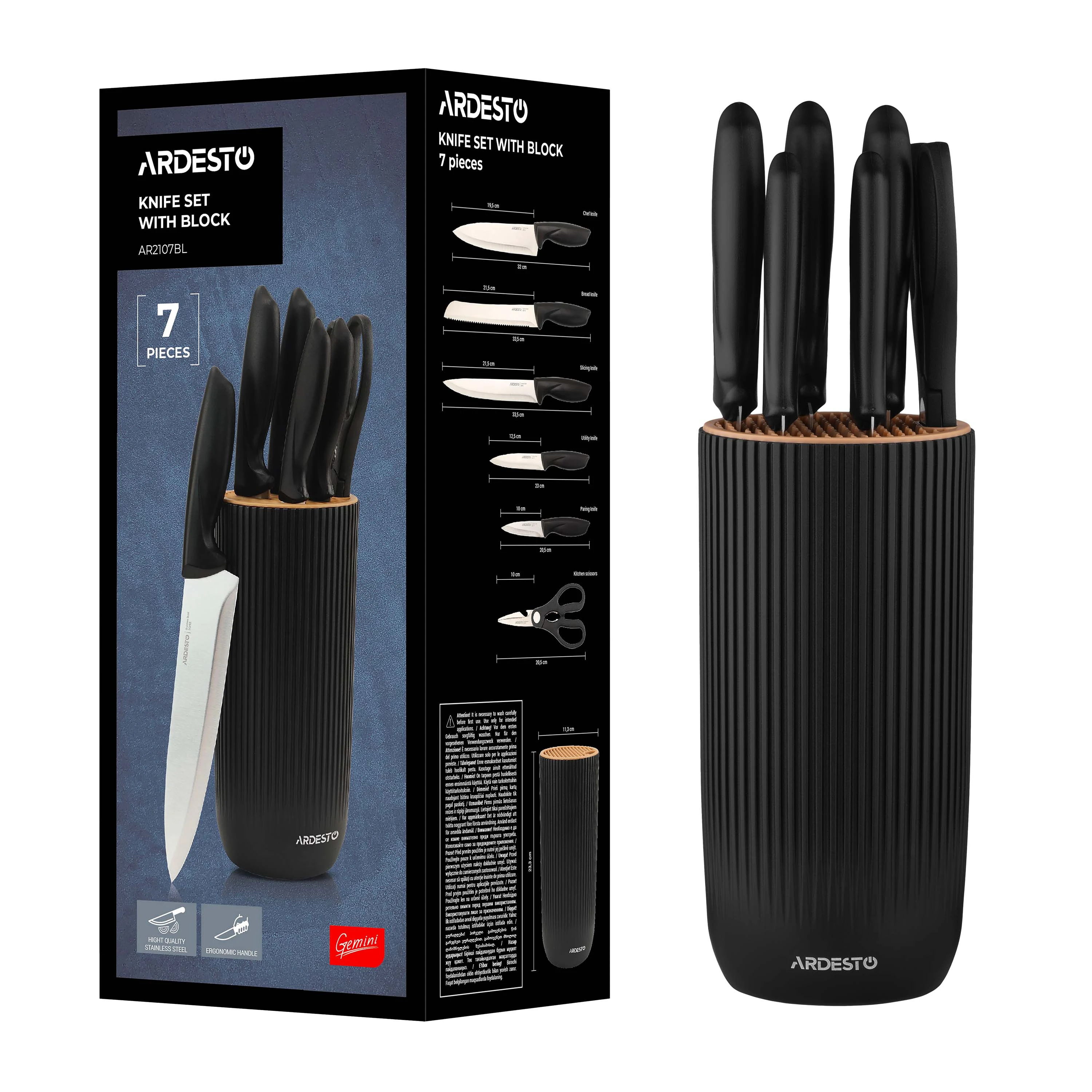 Набір ножів з блоком Ardesto Gemini, 7 предметів, нержавіюча сталь, пластик, чорний