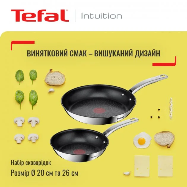 Набір сковорідок Tefal Intuition, 2шт, 20/26см, нержавіюча сталь