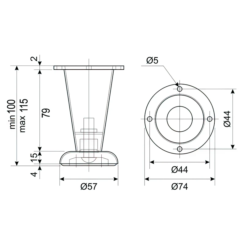 - Діапазон регулювання ніжки, мм Без регулювання