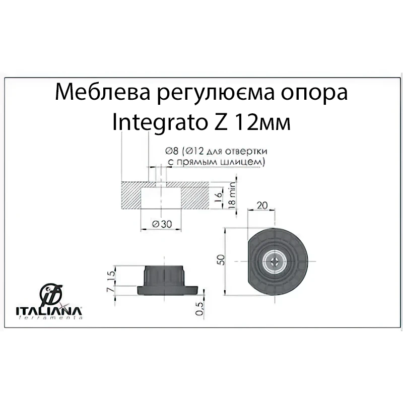 Ніжка меблева Іtaliana Ferramenta Integrato Z для шаф з регулюванням 12мм(133540)