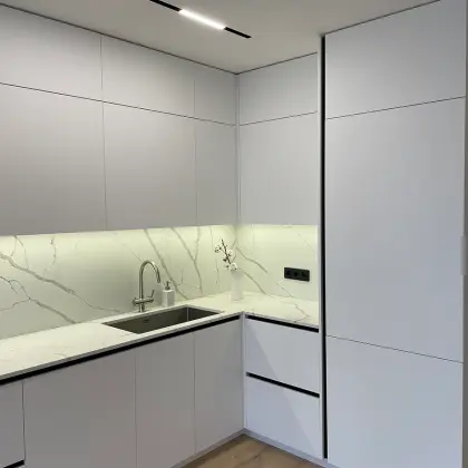 - Soft Touch покриття, що окрім сучасного матового також має стійку до подряпин структуру та не залишає по собі плями та відбитки, що так важливо для кухонних фасадів;