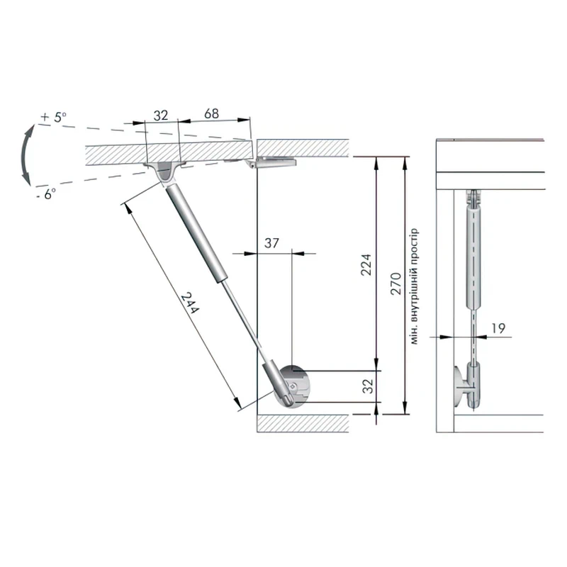 - Глибина монтажу: Лише 5 см, що дозволяє зберегти максимум корисного простору всередині шафи.