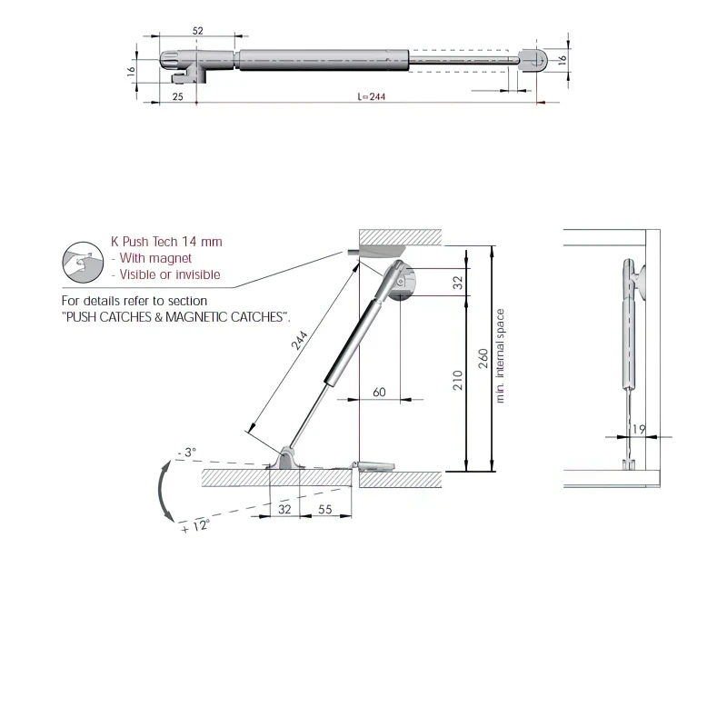- Постадійне відкривання: Фасад фіксується у будь-якому положенні, що особливо зручно для високо розташованих навісних шаф. Ліфт підштовхує двері для легкого відкриття, але при цьому не дозволяє їм відкриватися автоматично, забезпечуючи контрольоване відкривання.