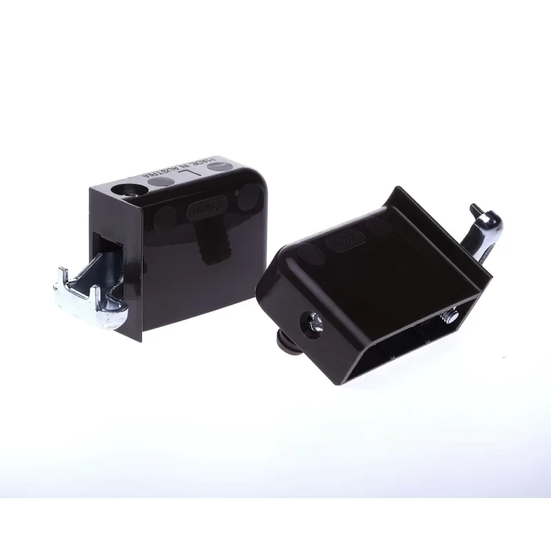 Навіси під запрессовку з фіксацією від перекидання - забезпечують безпечне кріплення та захист від випадкового від'єднання. Встановлюються на внутрішніх стінках корпусу і фіксуються на навісний планці. Можливість вибору заглушок в різних кольорах.