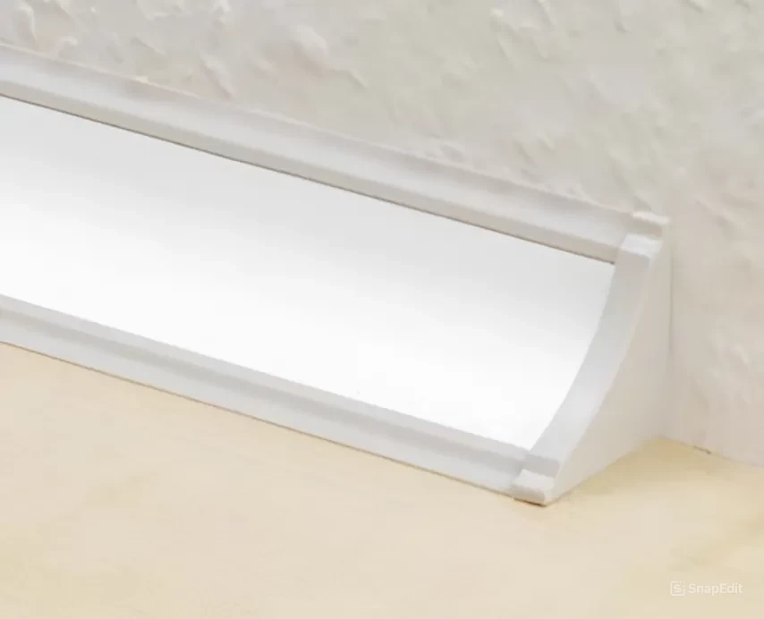 Плінтус використовується для встановлення між кухонною стільницею та стіною, забезпечуючи надійний захист та естетичний вигляд.