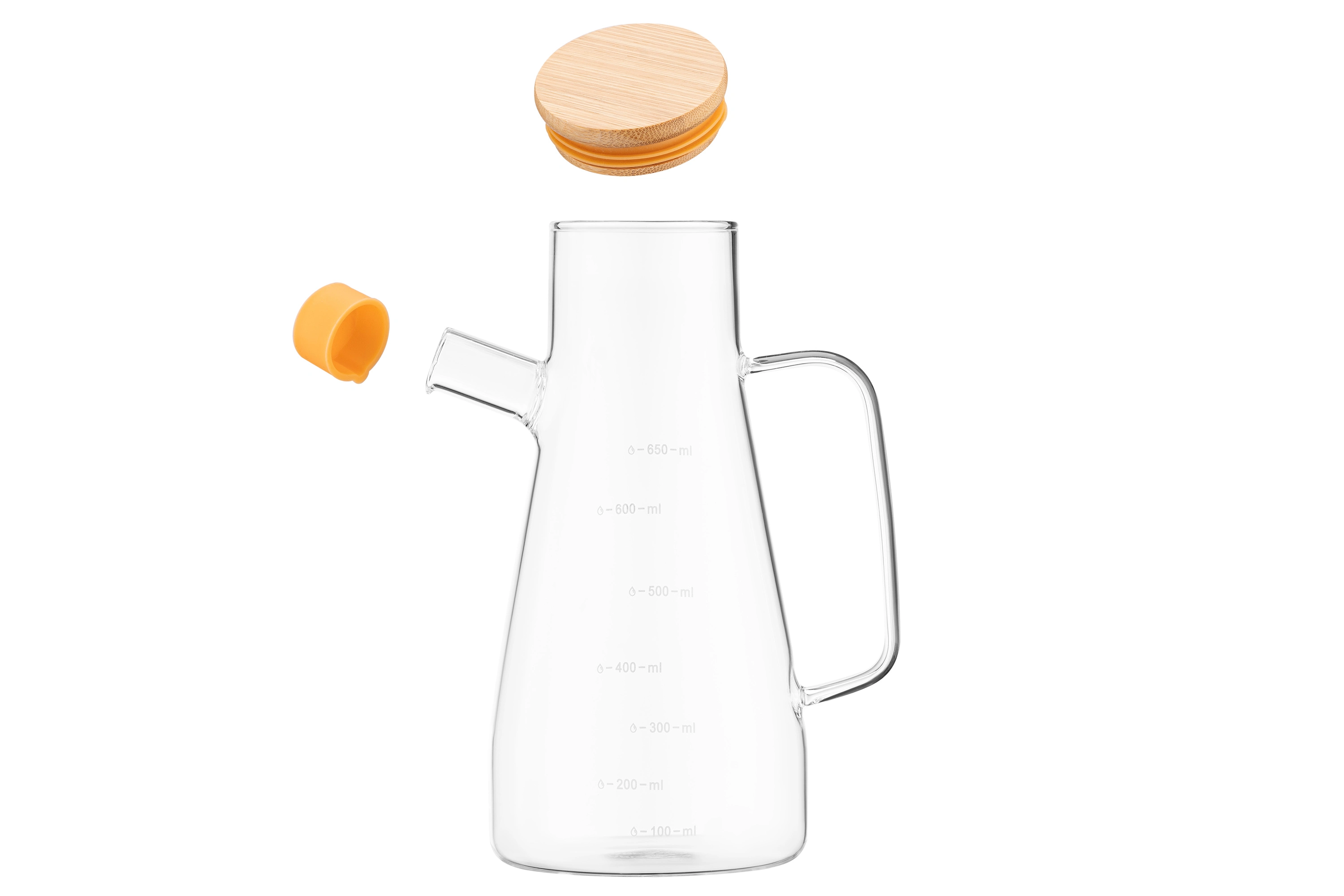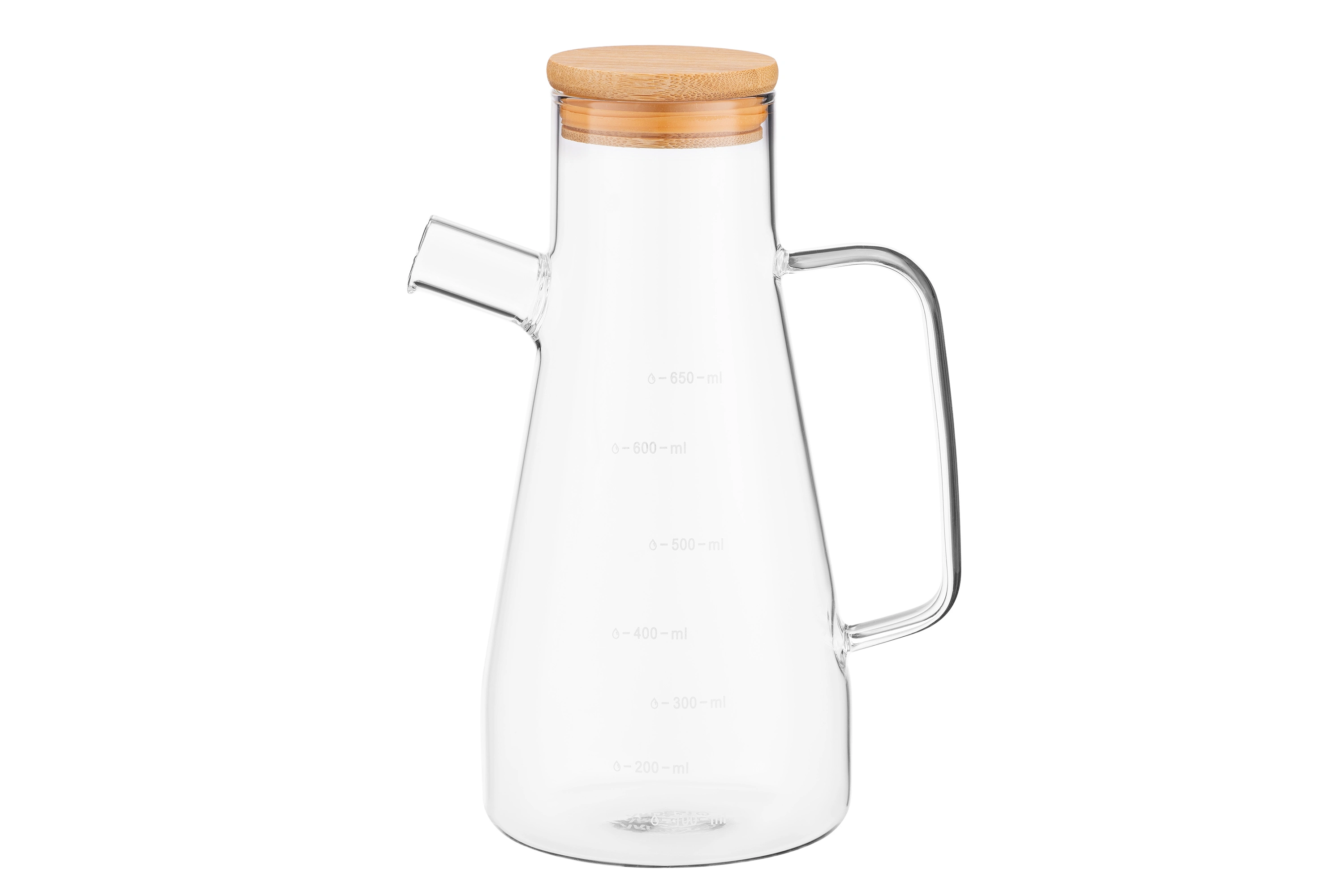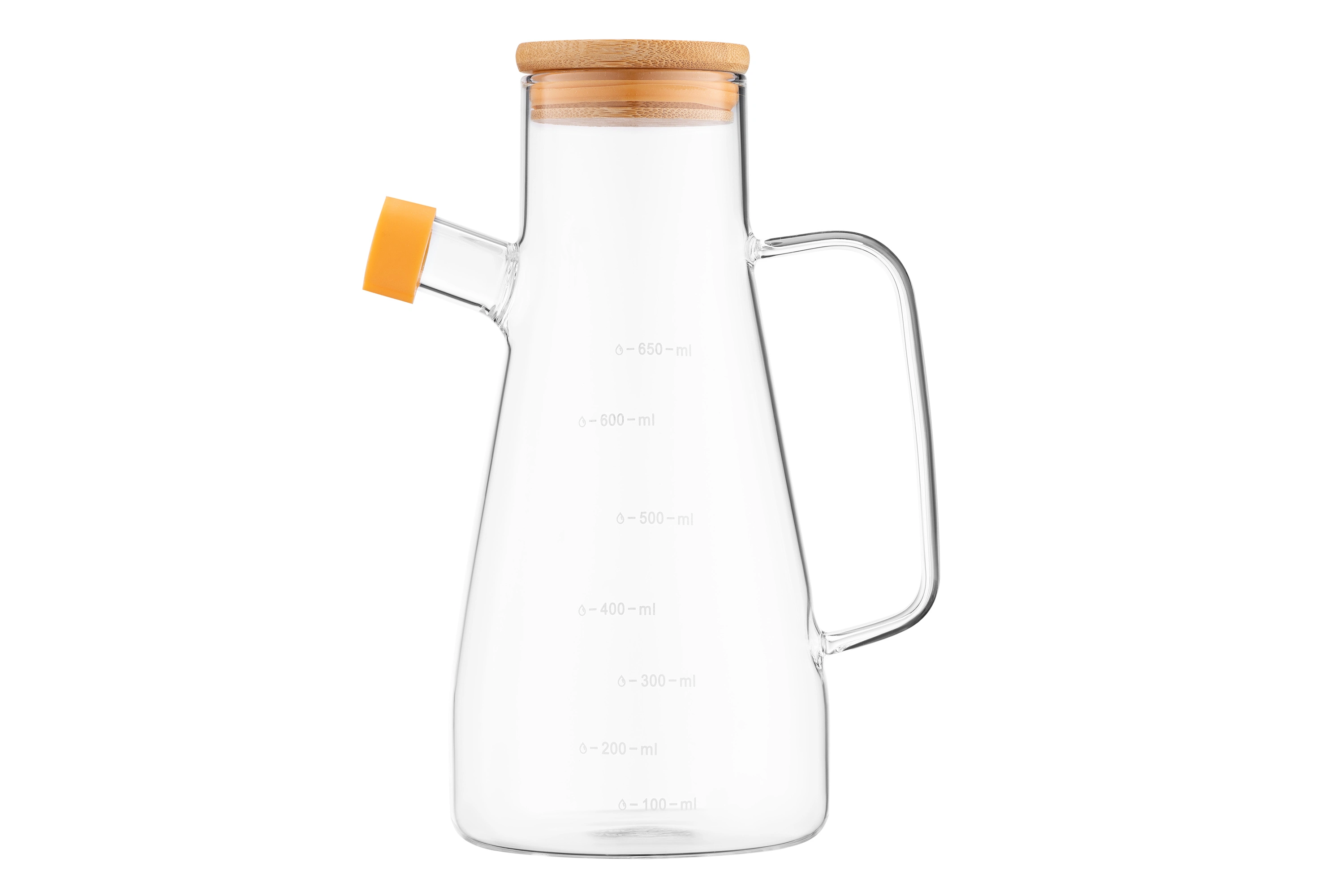 Пляшка для олії та оцту ARDESTO Midori вдало поєднує функціональність та елегантність. Виготовлена з якісного боросилікатного скла, за винятком бамбукової кришки, пляшка не лише стане справжньою окрасою столу, але й надійним помічником у кулінарних експериментах. За висоти (без кришки) 21 см і діаметра 9,2 см об’єм посудини становить 650 мл. Термостійкість від -20 до +150 °C зумовлює можливість використовувати пляшку під час різноманітних кулінарних процесів. Допустиме миття в посудомийній машині.