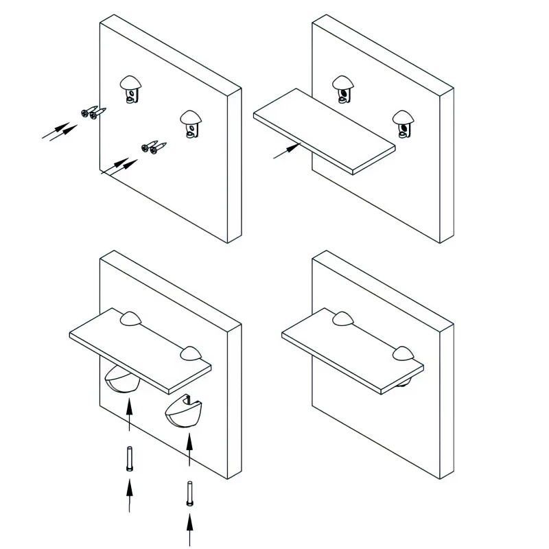 - розмір та товщина скляної полиці. Переконайтеся, що обрані полицетримачі підходять до розмірів та товщини вашої полиці, щоб забезпечити стабільність та безпеку конструкції;