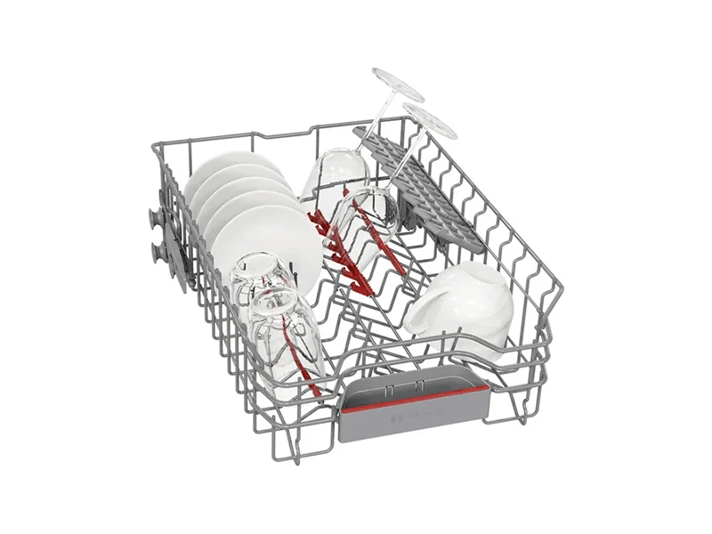 Вмісткий верхній короб можна регулювати по висоті в цілому на 5 см між трьома положеннями простим рухом руки завдяки системі Rackmatic. Тарілки для піци або фужери на високій ніжці - ця система дозволяє гнучко створити додаткове місце для високих предметів посуду у верхньому або нижньому коробі.