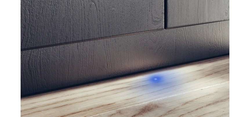 іnfoLight проектує блакитне світло на підлогу кухні, поки працює програма, а коли вона закінчується – світло згасає.