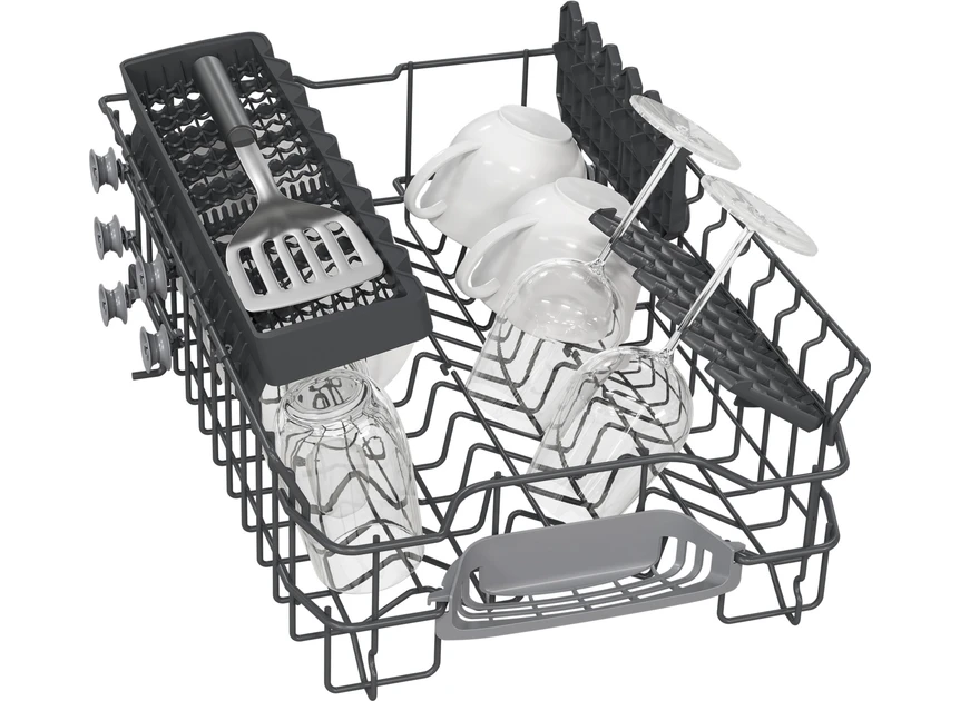 Багато посудомийних машин Siemens оснащено верхнім коробом, що регулюється за висотою. Завдяки такому технічному рішенню, ви легко за потреби зможете розмістити високі келихи у верхньому коробі чи тарілки великого діаметру у нижньому.