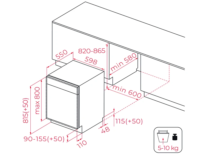 Виберіть установку, яка найкраще підходить для Вашої кухні. Встановіть посудомийну машину під стільницю, у високу шафу або повністю інтегруйте її в шафу для бездоганного вигляду.