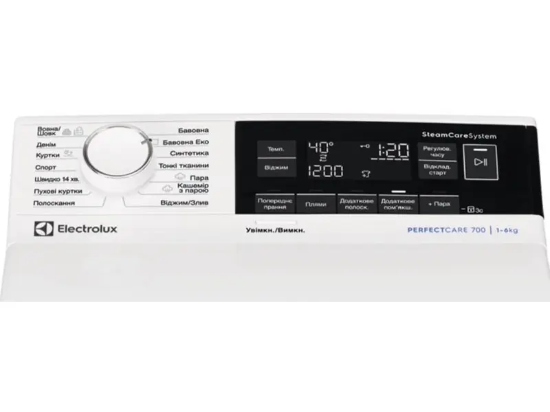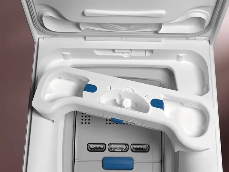 Пральна машина моделі 700 з верхнім завантаженням та системою SteamCare зменшує кількість складів на білизну на третій. Наприкінці програми подається пара, що погоджується. надати м'якість тканини. Все це без нагріву і сил, як при звичному прасуванні.