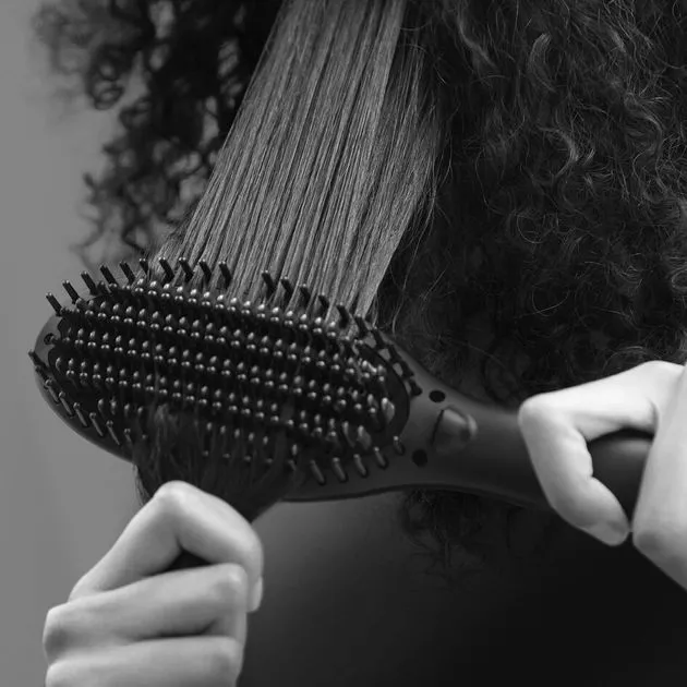 Щітка для випрямлення волосся ROWENTA x KARL LAGERFELD Power Straight була спеціально розроблена для легкого випрямлення волосся з тенденцією до електризації або завивки лише за кілька хвилин! Щітки потрійної дії захоплюють, розтягують та випрямляють волосся для швидкого та ефективного результату. Щетинки для захоплення коренів. Потрійна дія щетинок починається з 40 щетинок, які захоплюють та утримують волосся від кореня.