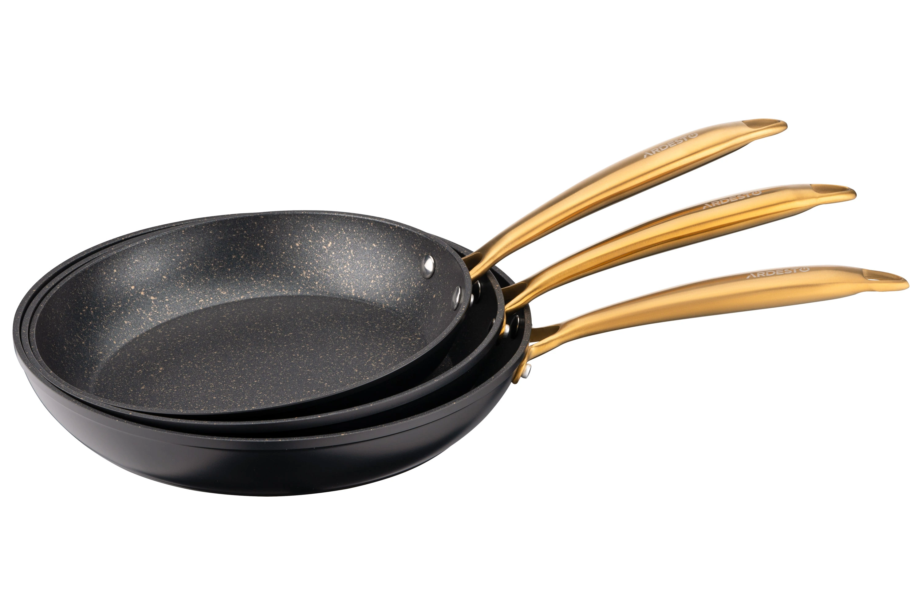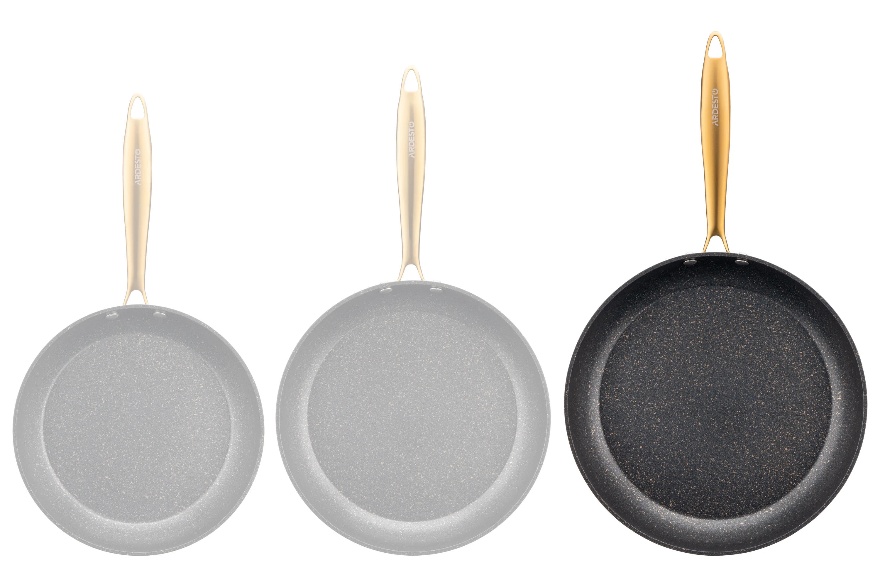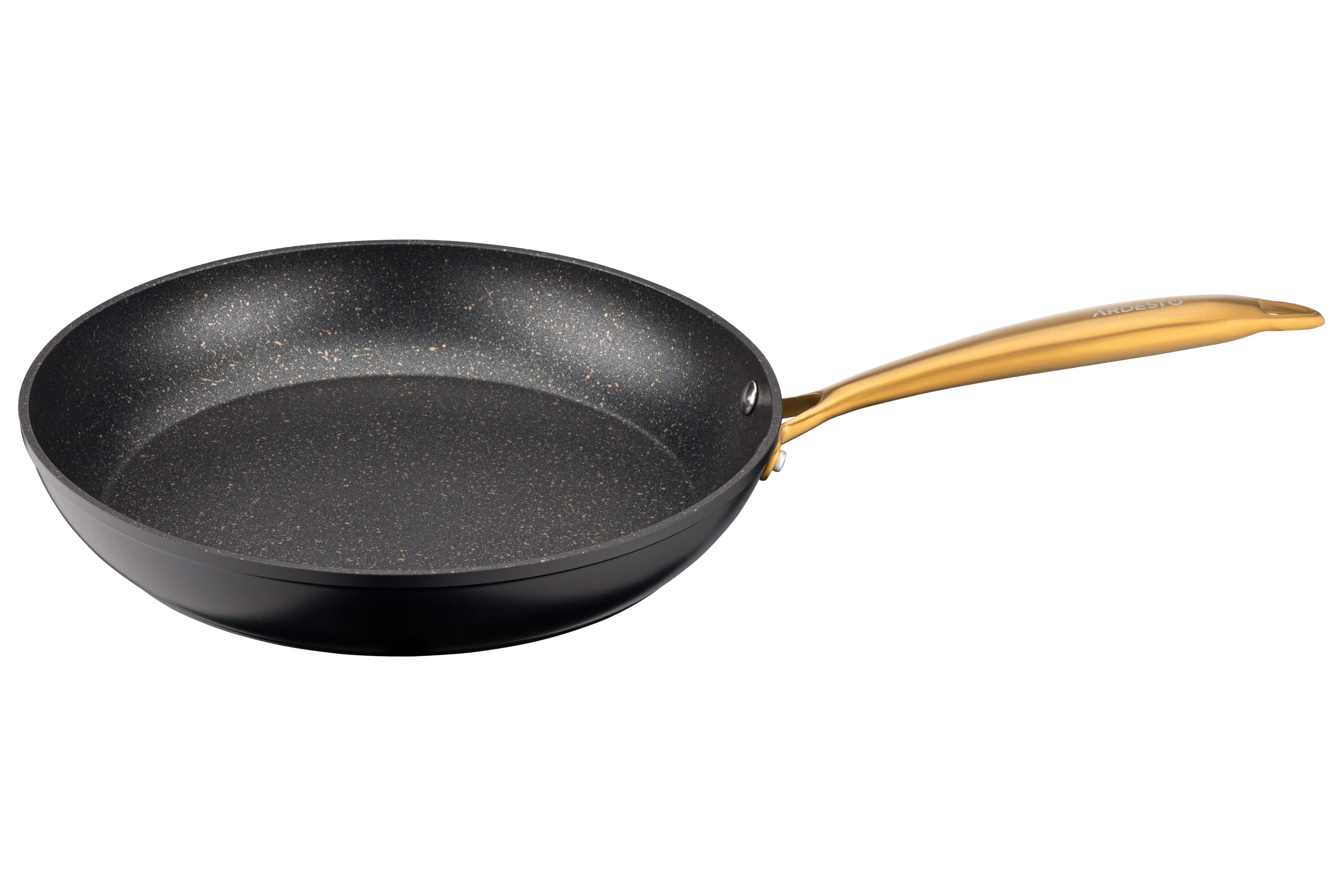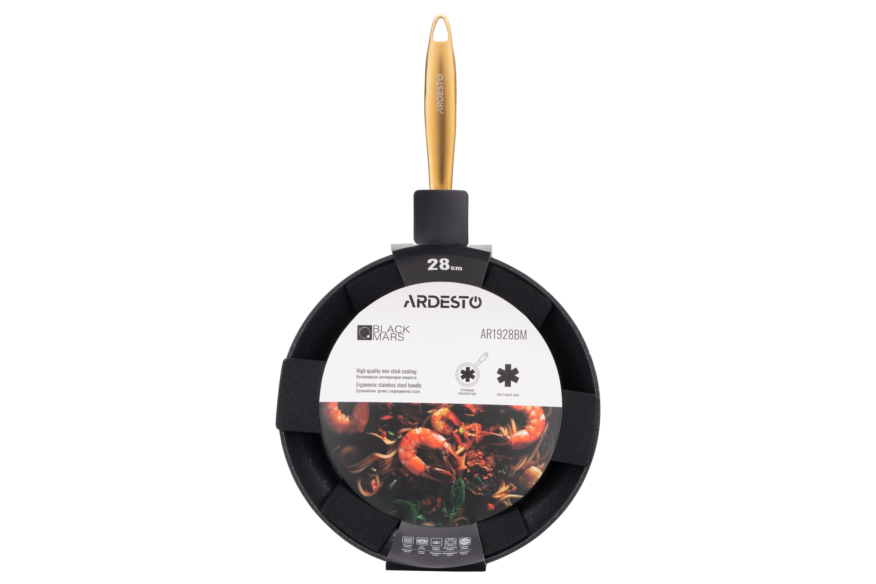 Сковорода ARDESTO Black Mars виготовлена з якісного алюмінію, завдяки чому забезпечується рівномірний розподіл тепла. Її діаметр становить 28 см за товщини стінок 2,5 мм. Сковорода має якісне протипригарне покриття Golden Marble, що зумовлює можливість приготування страв із використанням мінімальної кількості олії.